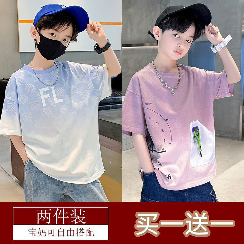 URBANSHOW 半袖ボーイズピュアコットン夏韓国風カジュアルルーズ中大型子供用半袖Tボーイズ子供用Tシャツ
