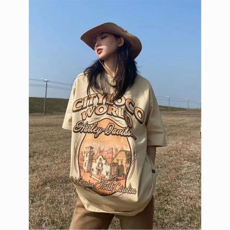 綿100%の夏の新しい国民的ファッションブランド女子学生向け半袖Tシャツ韓国風ルーズカレッジスタイル半袖トップス