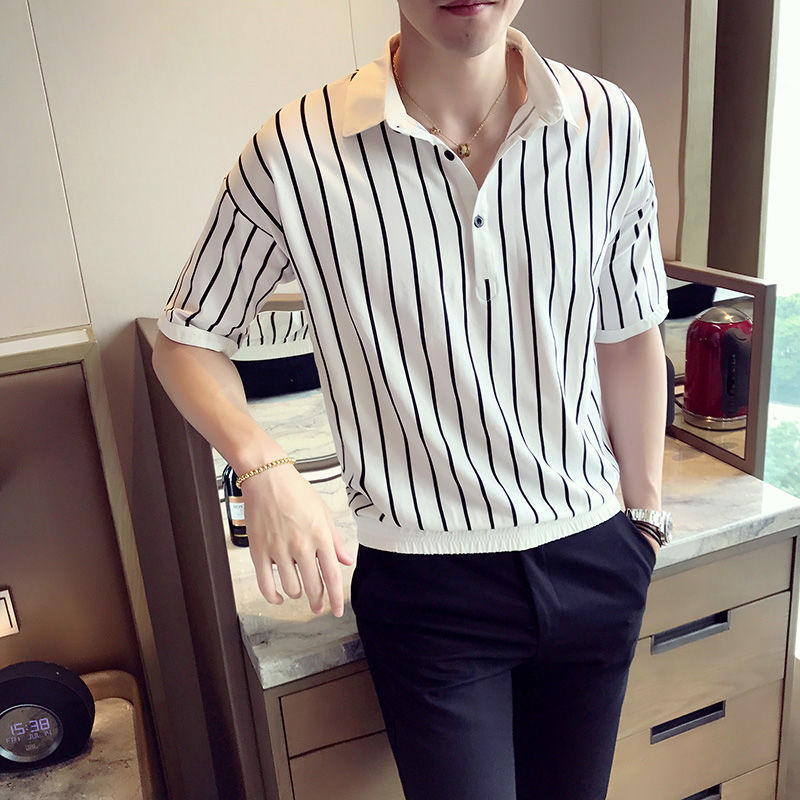 オプションの半袖長袖Tシャツメンズポロシャツ春秋半袖Tシャツ韓国風トレンドストライプルーズ紳士服