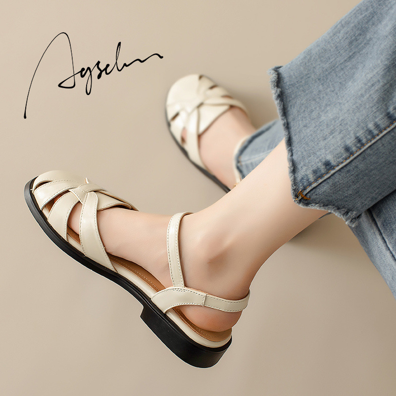 Augushiden スポーツサンダル女性の 2023 新しい夏の女性の靴インターネット有名人 ins 多用途本革ホールビーチシューズ