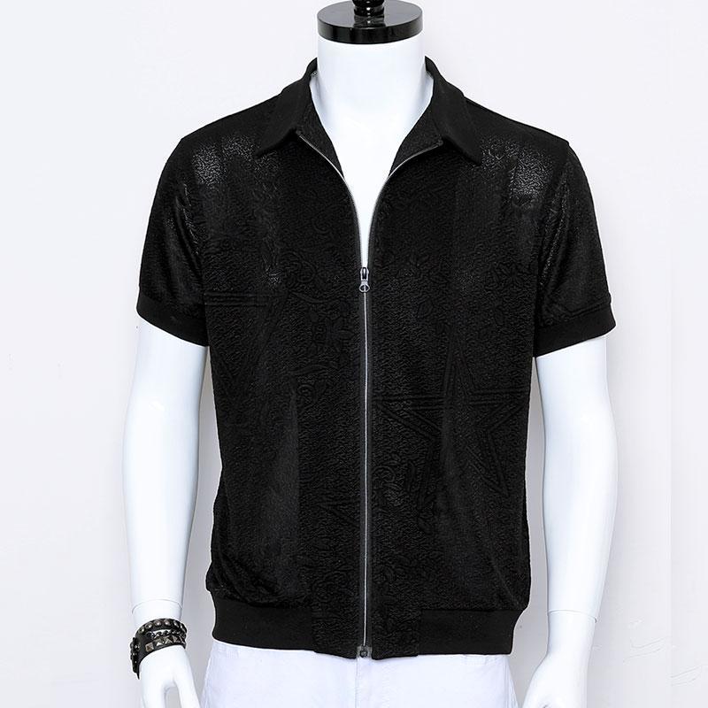 2025 春夏半袖シャツメンズファッションアイスシルクジャカードラペルジッパーシャツ大きいサイズルーズカジュアルシャツ
