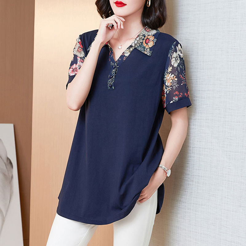 西洋風中年ママ純綿半袖Tシャツレディース夏新作ミドル丈レディースゆったり大きいサイズトップス