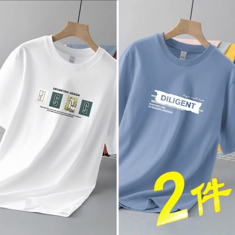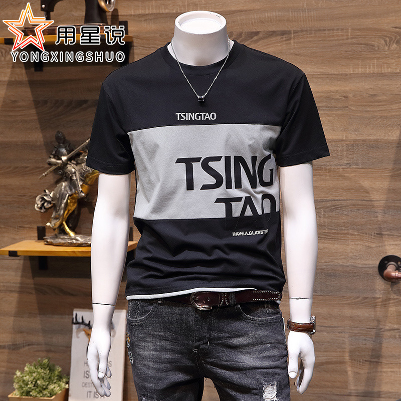 純綿メンズ半袖Tシャツ2025新作韓国版トレンディハンサムユースレタープリントカラーブロック半袖メンズトレンド