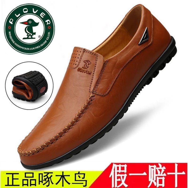 PLOVER 新しい本革メンズビーニーシューズ純粋な牛革ファッションビジネス革靴メンズスリッポン大きいサイズの紳士靴