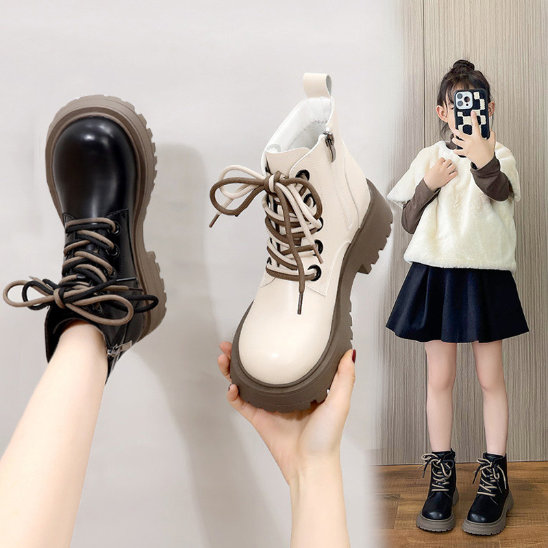 女の子マーティンブーツ 2023 冬の新英国スタイルベルベット肥厚本革防水子供ブーツレザーブーツ
