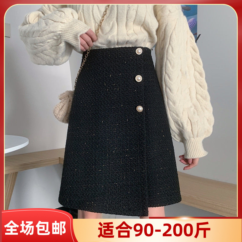 大きいサイズのスカート、ハイウエストインウールスカート、スリムで不規則なAラインヒップスカート、ヒップカバー、厚手の花柄ミドル丈スカート、冬