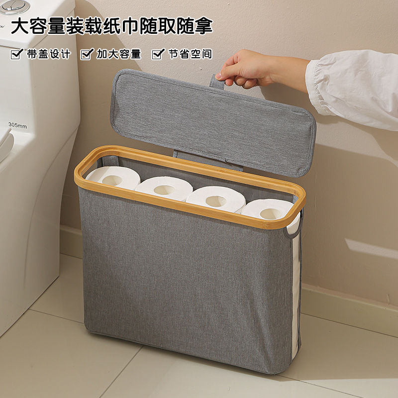家庭用バスルームペーパー雑貨収納バスケット折りたたみ式防水収納ボックス蓋付きシースルーティッシュ収納バスケット