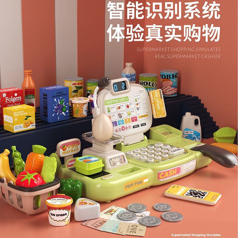 レジのおもちゃ子供用小さな女の子スキャンカードショッピングパズル3-6歳多機能レジおままごと