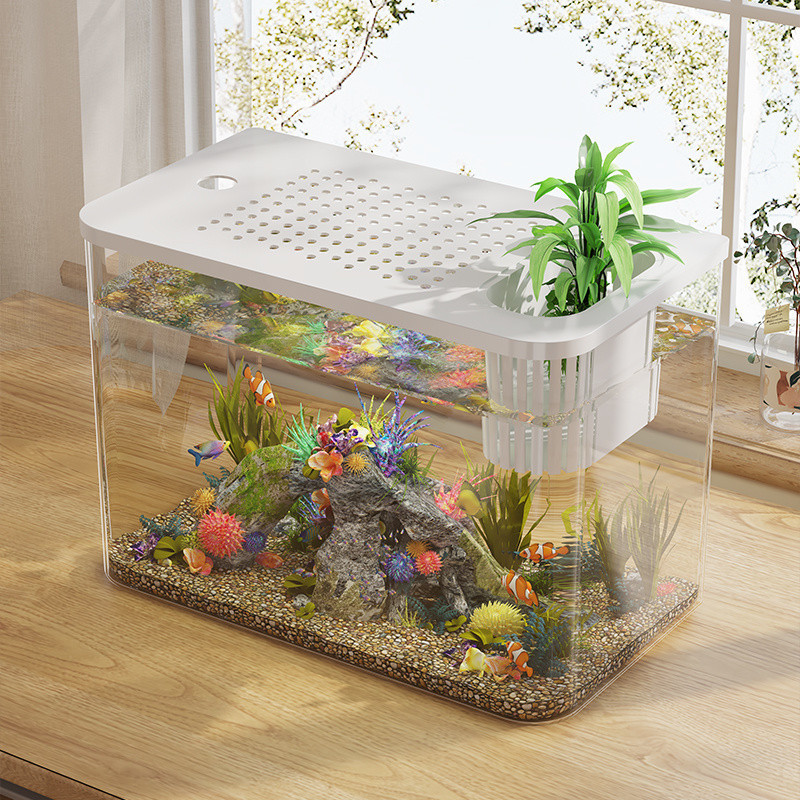 水槽水族館デスクトップ生態金魚水槽プラスチック高透明ホームリビングルーム造園中小型怠惰な水槽