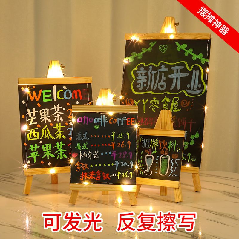 広告看板の小さい黒板の蛍光板を並べてテーブルの上の縦型の黒板のミルクティーの店のホテルのコーヒーのミルクティーの店を並べます。