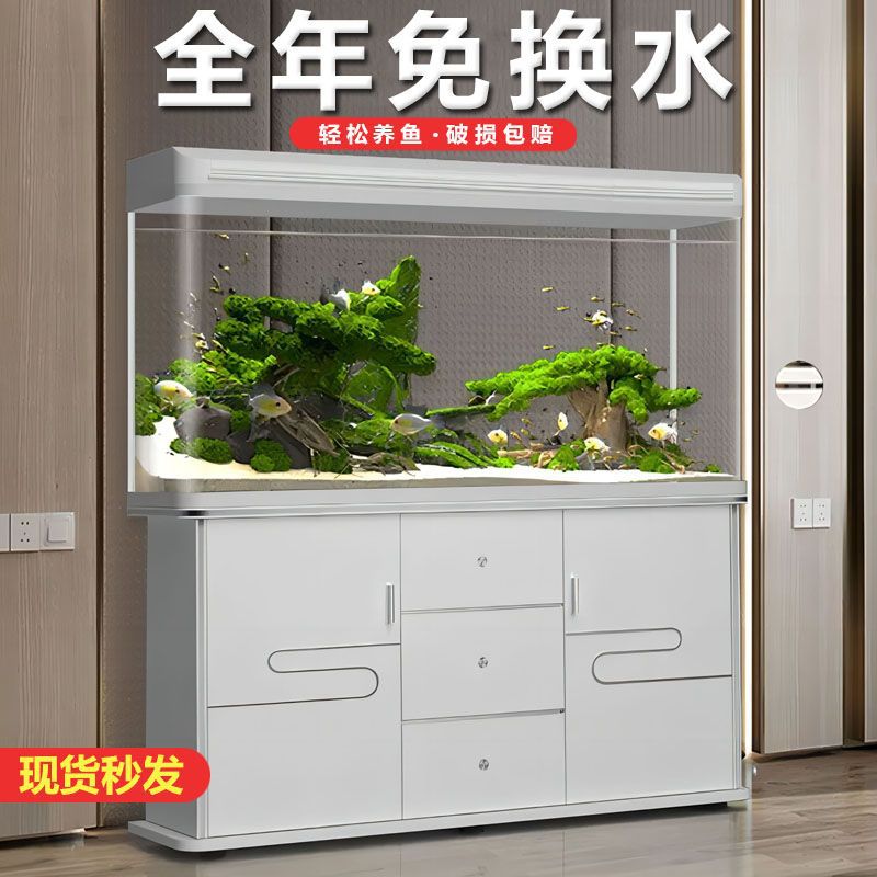 中小型水槽水槽怠け者家庭用リビングルームは水を交換しない生態水槽大型ガラス金魚鉢棚付き