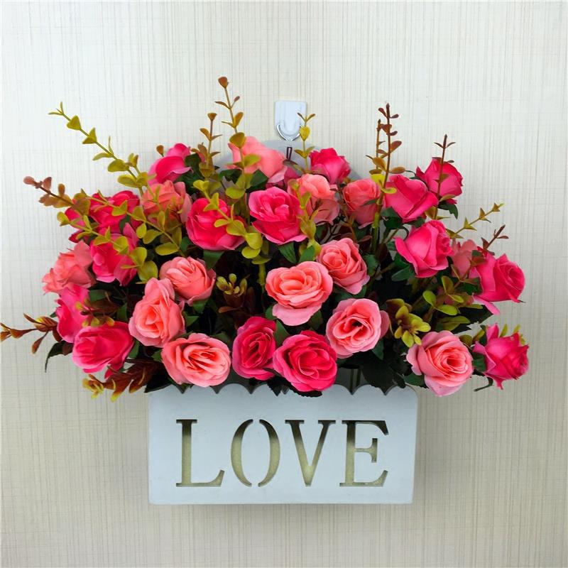 结婚式花造花セットバスケット吊りバスケットローズ绢花セット食卓プラスチック花リビングルームインテリア置物