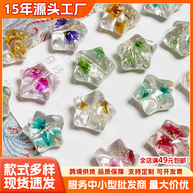20 ミリメートル金箔本物のドライフラワー五芒星ルースビーズ手作り diy ビーズルースビーズ携帯電話チェーンキーチェーンジュエリーアクセサリー
