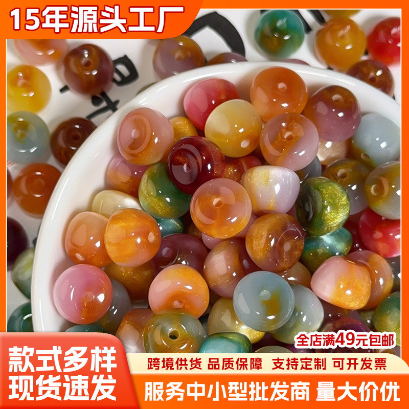 新中式流光暈染金箔樹脂ビーズ玉花金丸ビーズブレスレットビーズボタン衣料品アクセサリー