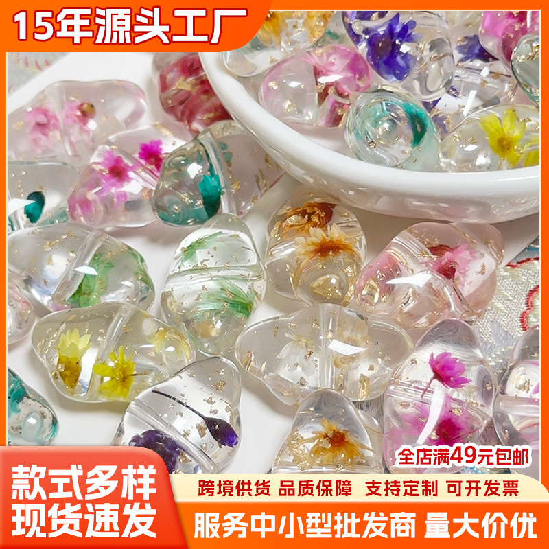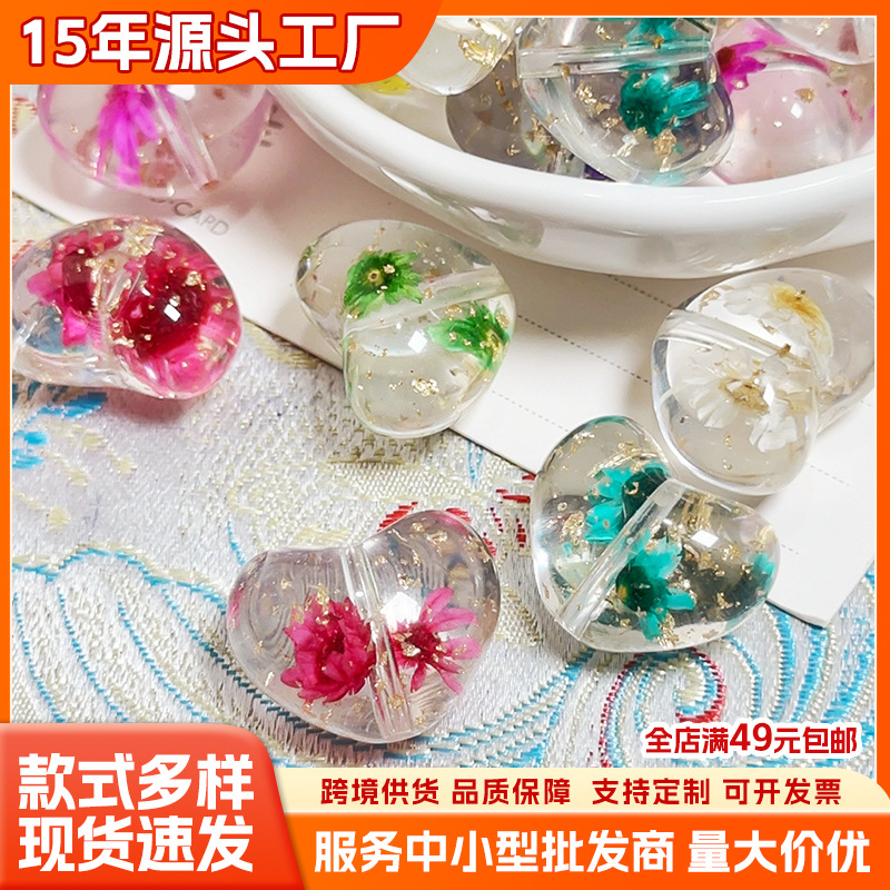 17*22 ミリメートル金箔本物のドライフラワーラブルースビーズ手作り diy ビーズルースビーズ携帯電話チェーンキーチェーンジュエリーアクセサリー