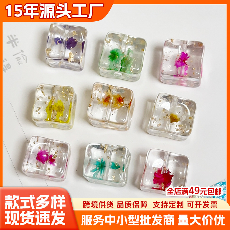 22 ミリメートル金箔本物のドライフラワー氷ルースビーズ手作り diy シュガーキューブビーズ携帯電話チェーンキーチェーンジュエリーアクセサリー