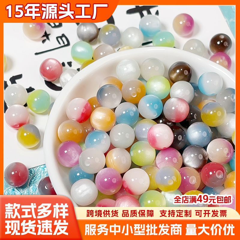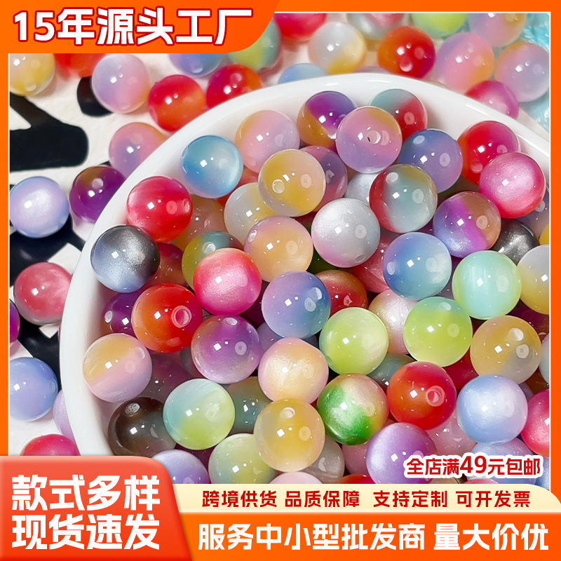 卸売 10 ミリメートルダブルカラー樹脂模造キャッツアイラウンドビーズ手作り DIY ビーズジュエリーアクセサリーネックレスルースビーズ素材