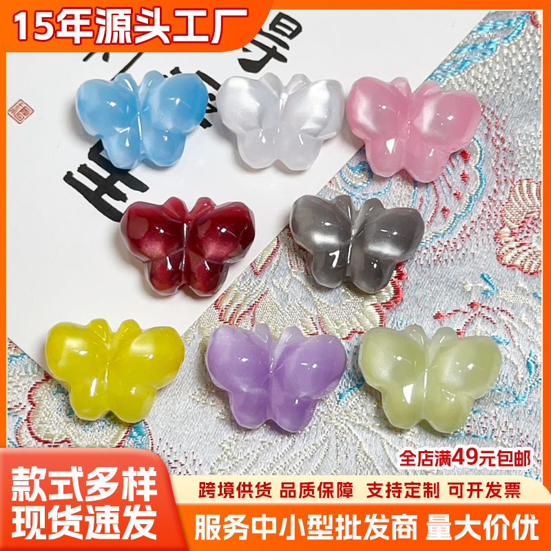 両面彫刻カラーキャッツアイ樹脂蝶転送ジュエリー手作り diy ルースビーズブレスレットネックレスアクセサリー