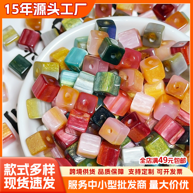 8 ミリメートル正方形のカラフルな金メッキ樹脂シュガーキューブビーズ diy ブレスレットアクセサリー材料ビーズルースビーズ衣類アクセサリー
