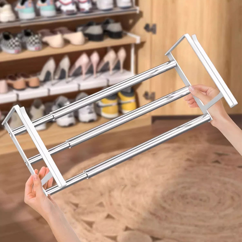 伸縮可能な靴棚の棚は穴を開けないでください。