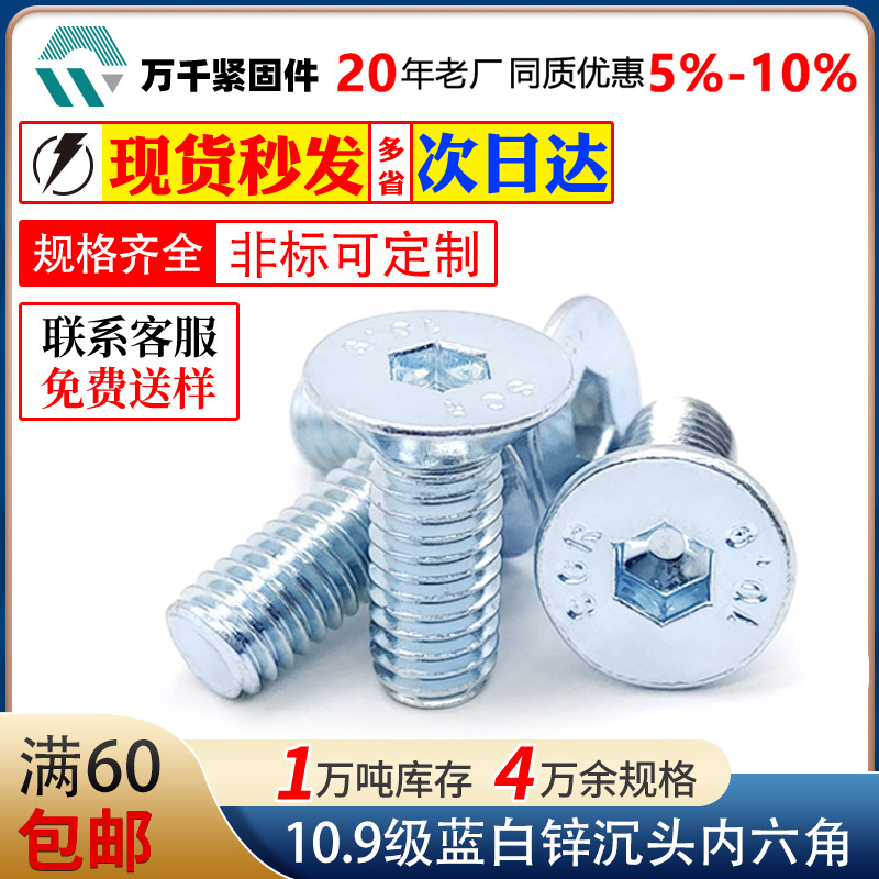 10.9級高強度沈頭内六角ねじ平頭内六角ボルト卸売りねじm 5/m 6/m 8/m 10