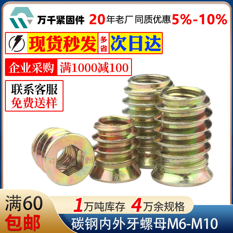 炭素鋼の沈頭の六角内の外歯のナットの家具の埋め込みのナットの直通の外歯の家具の接続部品のm6m8
