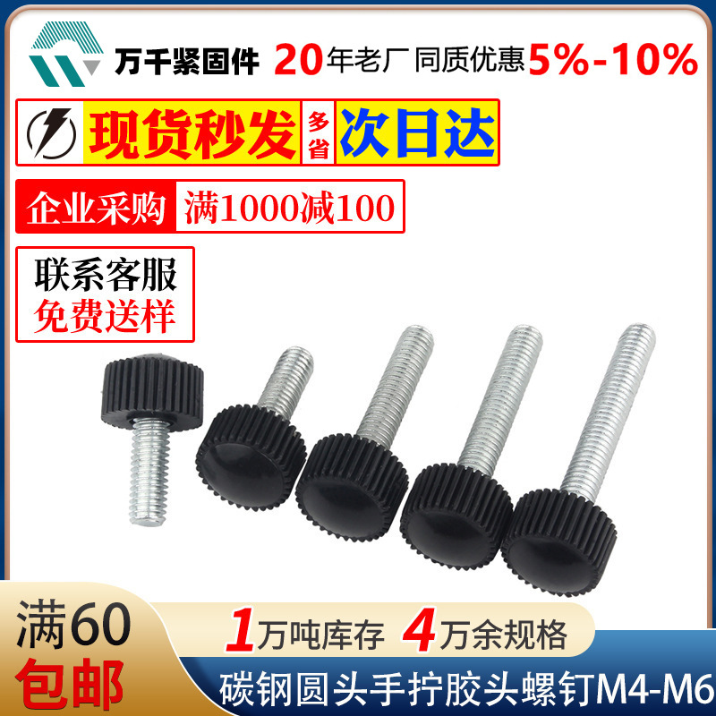 黒/白色炭素鋼丸頭手回しゴムねじプラスチック丸頭ローラハンドルねじゴムつまみねじ