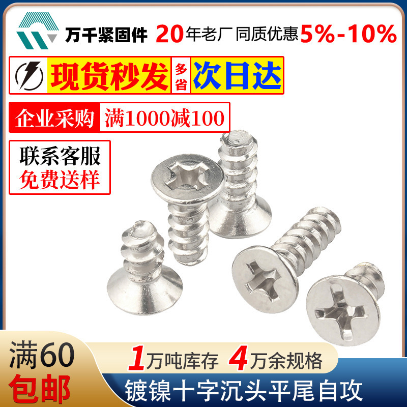 炭素鋼ニッケルメッキkb電子小ねじ十字沈頭平尾タッピング平頭タッピングねじm1.2m 2m 3m 4