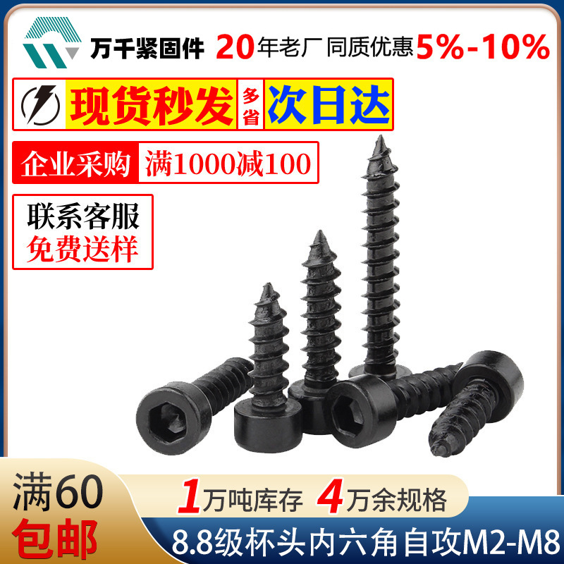 メーカー直供炭素鋼8.8級黒カップ先タッピングねじ円柱頭六角タッピングm3m4