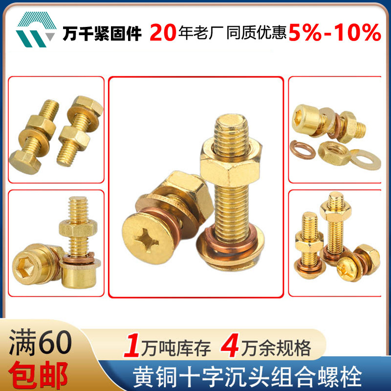 メーカー直供黄銅十字沈頭ナット付きコンビネーションねじ平頭ねじナットセットm3 m 4m 5m 6m 8