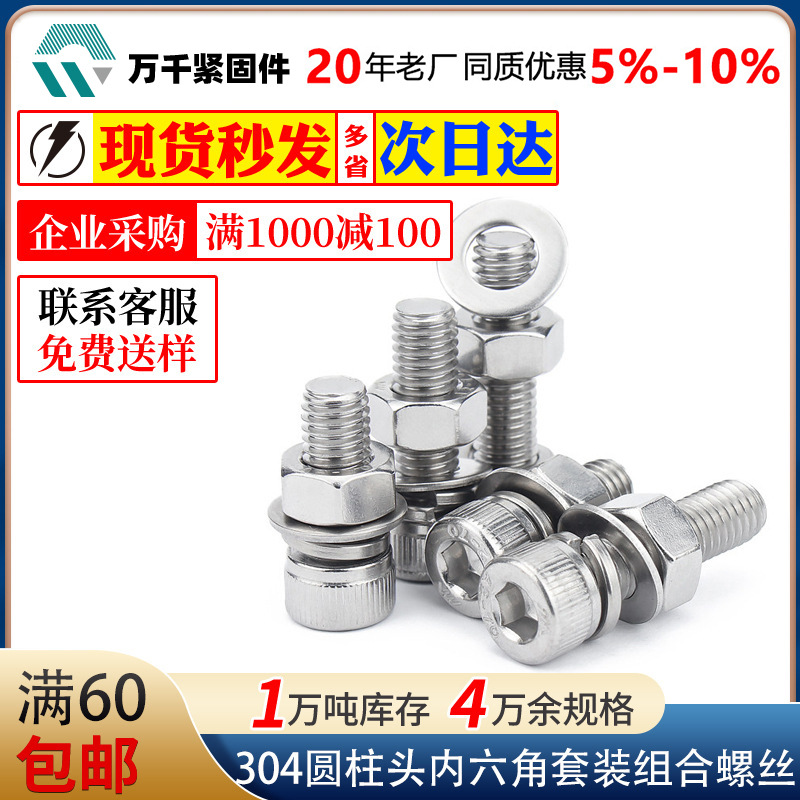 304ステンレス円筒頭六角ネジナットセット平弾マット付きm 2m 3m 4m 5m 6m 8m 10