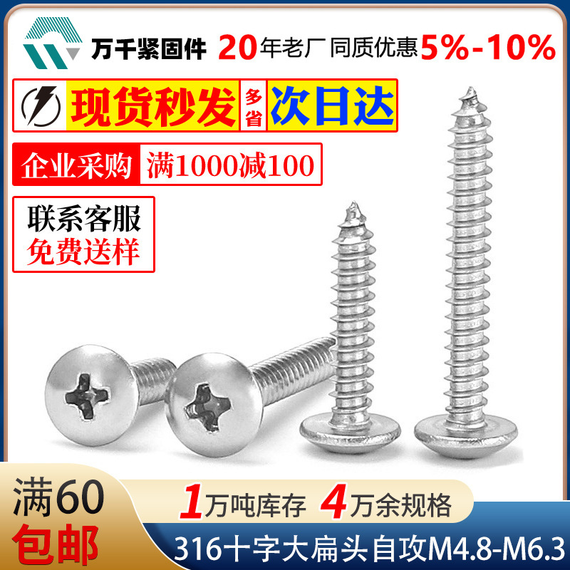 スポット316ステンレス十字平頭タッピングm4.8m5.5m6.3m8十字溝沈頭タッピングねじ