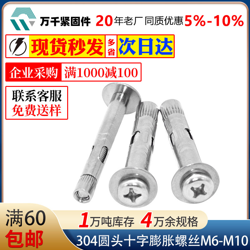 304ステンレス十字丸頭膨張ねじ内膨張ボルト盤頭パッド内爆ねじm6m8m10