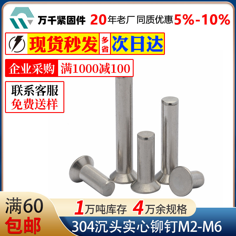 304ステンレス沈頭中実リベットgb869ノック式平錐頭中実リベットm 2m 2.5m 3m 4m 5m 6