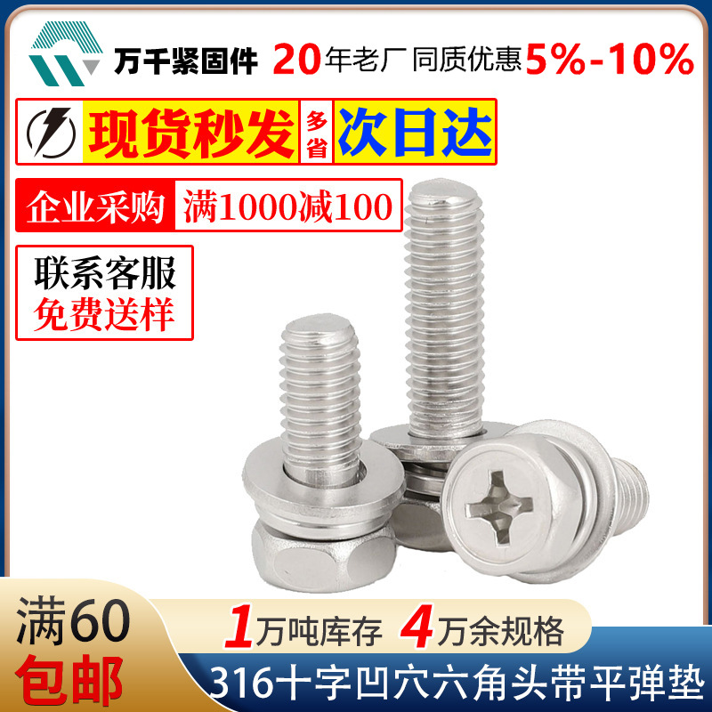 メーカー現物316ステンレス十字溝凹穴六角頭帯平弾マット三組ねじm 4m 5m 6m 8
