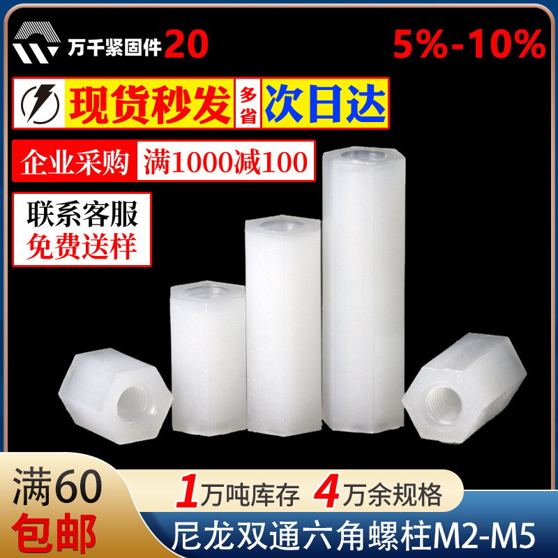 ナイロン双通白色六角ナイロン柱プラスチック絶縁隔離柱支持柱平頭pc板間隔柱m3m4