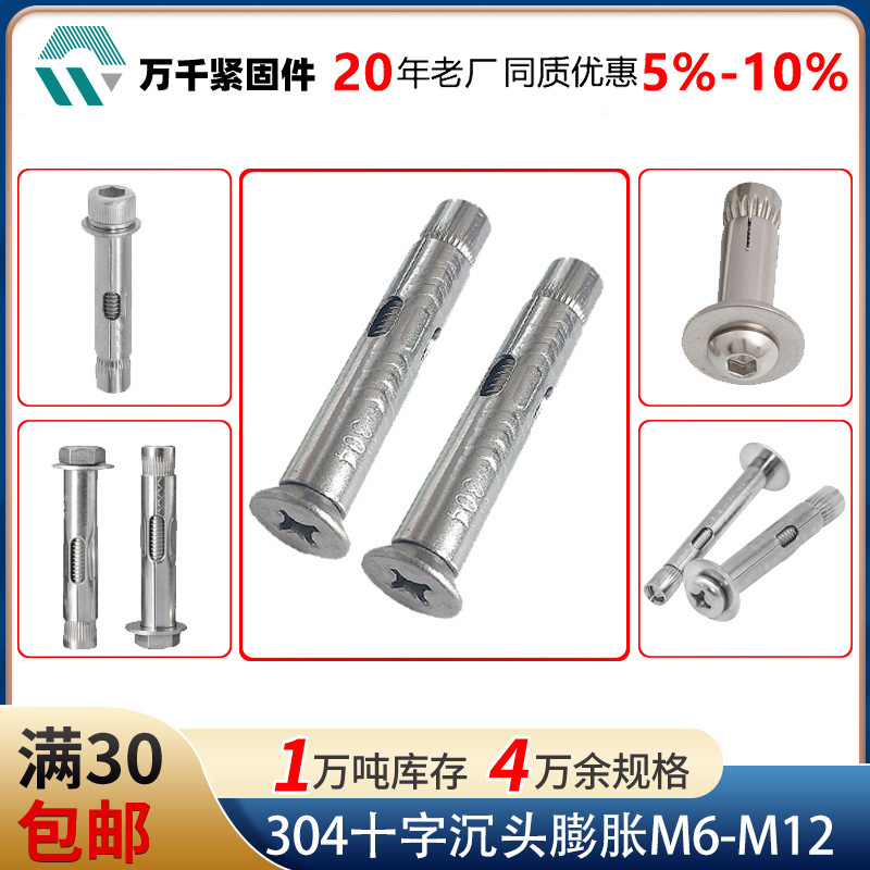 304ステンレス十字沈頭膨張ねじ平頭内膨張ボルトm6m8m10m12膨張ねじ