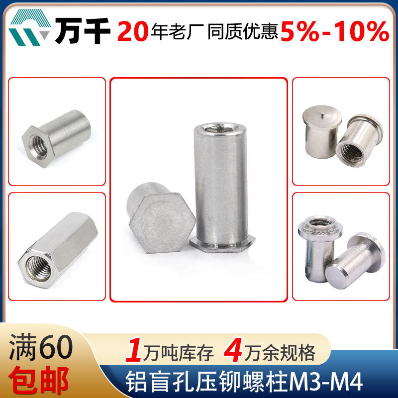 メーカー直供アルミ製リベットスタッドのアルミブラインド穴リベットスタッドm 3m 3.5m 4圧板スタッド