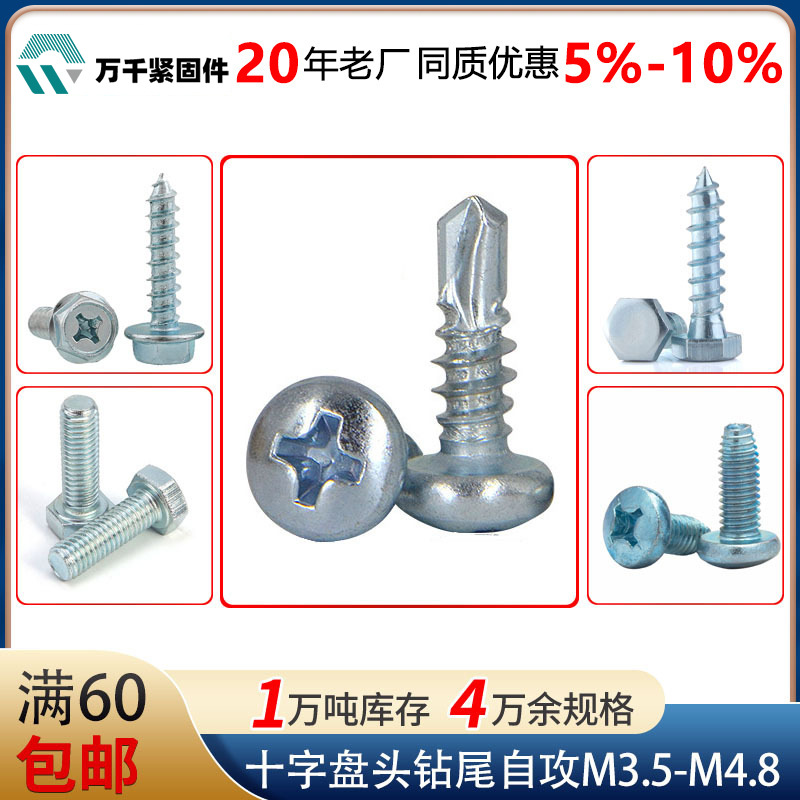 青白亜鉛十字丸頭ドリル尾タッピングねじm3.5 m3.9m4.2m4.8盤頭ドリル尾アリタッピング釘