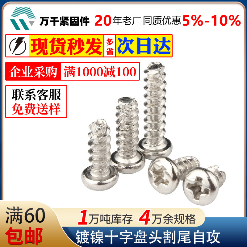 ニッケルメッキ十字盤の平尾切りタッピング溝付き丸頭電子小ねじM2M2.3M2.6M3-M4