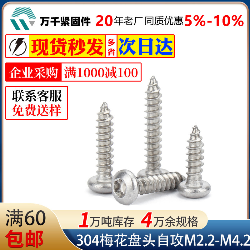 304ステンレス製の梅の花の溝の丸い頭のタッピングのねじの皿の頭の梅の花の盗難防止のタッピングのm2.6m2.9m3.5 m3.9