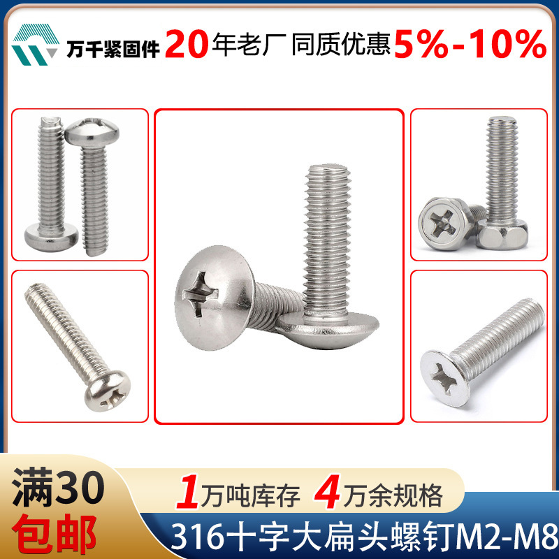 316ステンレス十字大平頭機ねじ十字傘頭キノコ頭ねじm 2m 2.5m 3m 5m 5m 6m 8