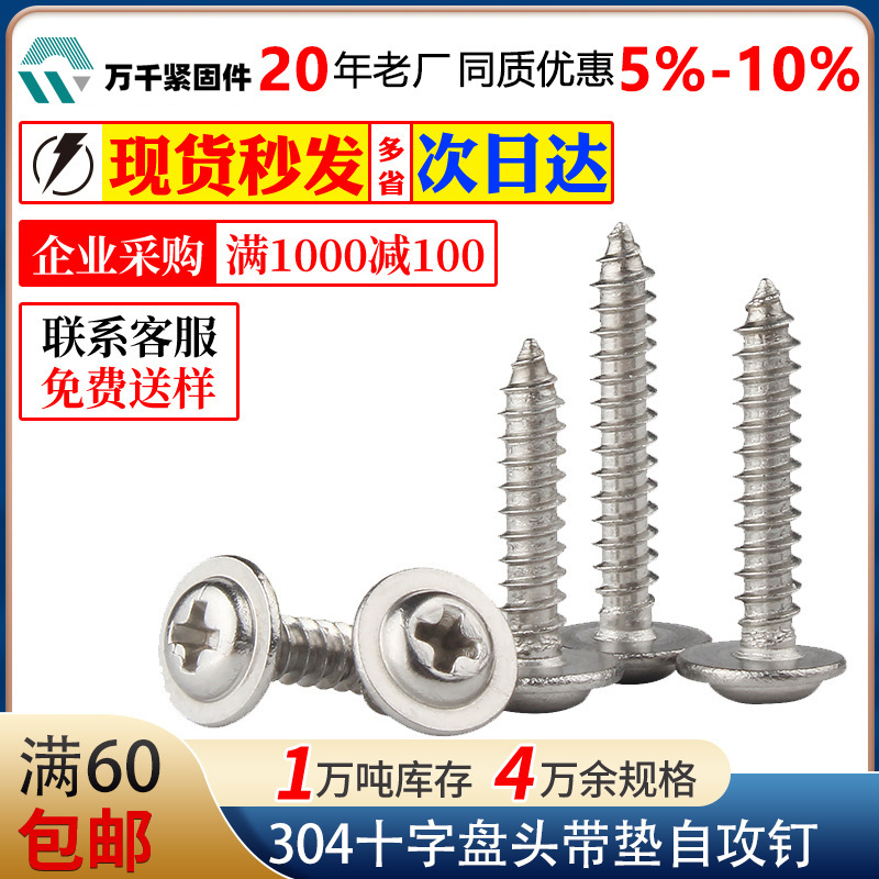 304ステンレス十字盤頭パッド付きタッピングねじpwa円頭尖尾タッピングm2.9m3.5 m3.9