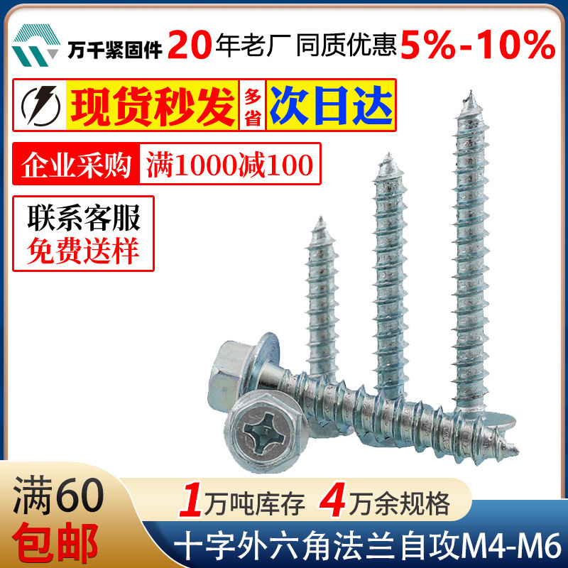 青と白の亜鉛の十字の溝の凹穴の外の六角のフランジのタッピングの十字のパッドのタッピングの木の歯のねじm 4m 5m 6