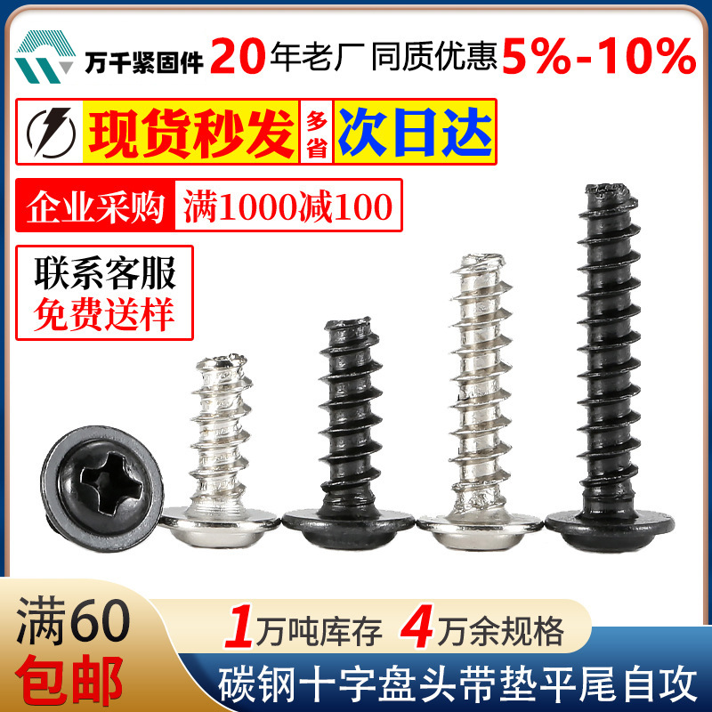 炭素鋼黒色十字丸頭パッド付き平尾タッピングニッケルメッキ盤頭タッピング小ねじm1.4 m 2m 3m 4