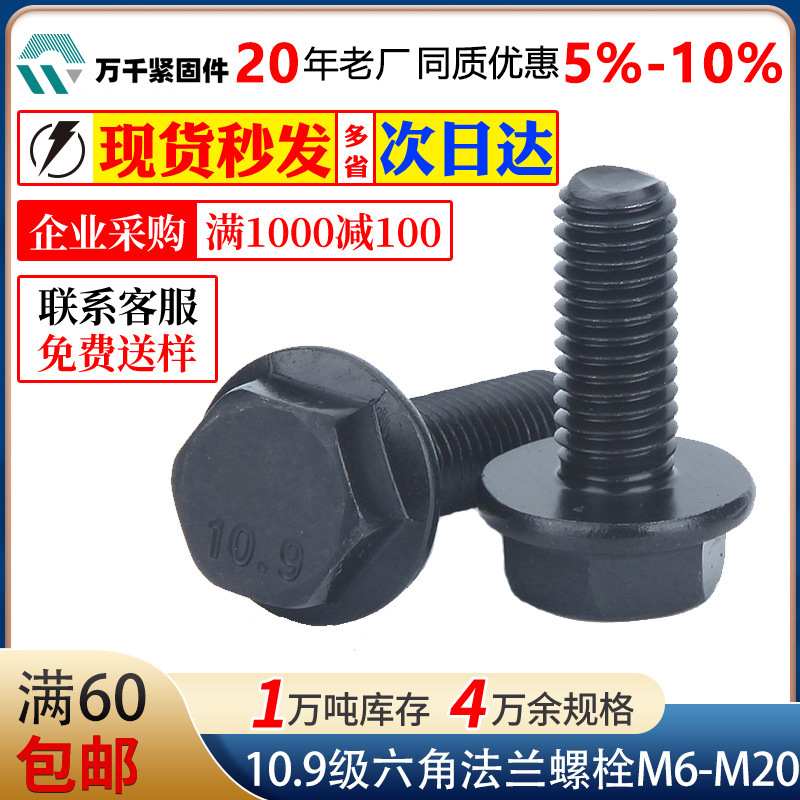 炭素鋼10.9級外六角フランジボルト六角パッド付きネジm6m8m10m12m14m16m20