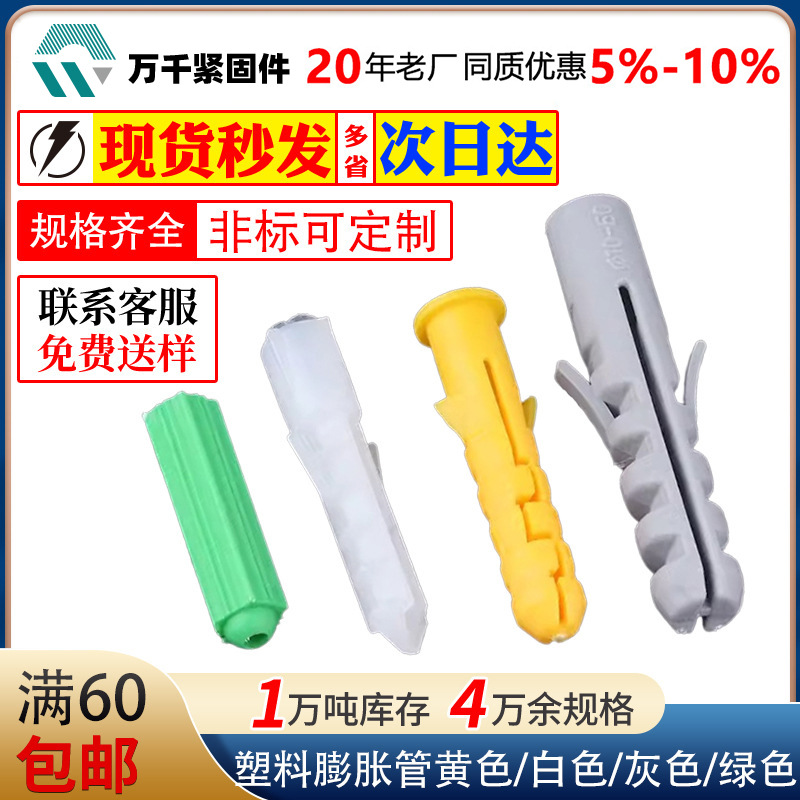 ナイロン小黄魚プラスチック膨張管ねじ膨張ゴム粒膨張プラグ白緑灰色M6M8M10