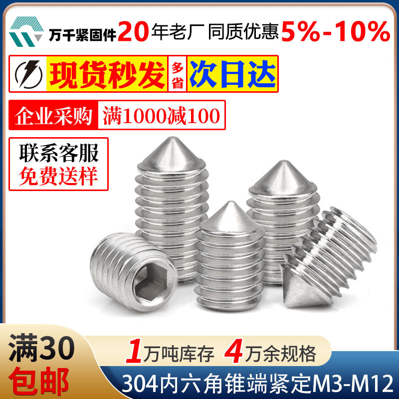 Din914ステンレス304内六角錐端締めねじ頭なし六角機械米ねじm3m4