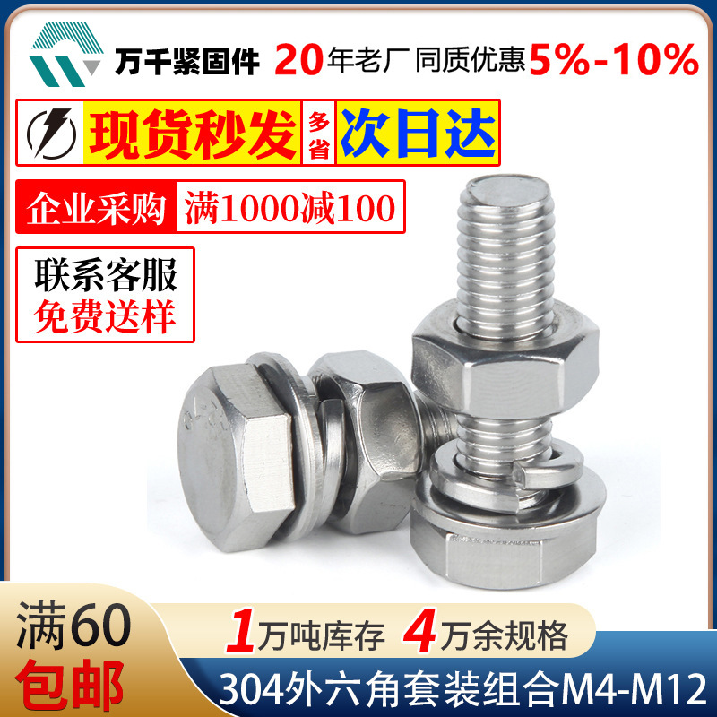 304ステンレス鋼外六角ボルト、ネジ、ナットセットDIN933付属品一式、ネジM5M6M8M10