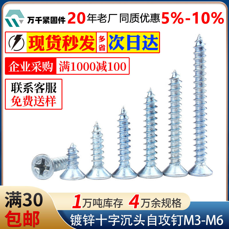 メーカー直供炭素鋼メッキ青白亜鉛十字沈頭自攻釘十字溝平頭自攻ねじm 3m 4m 5m 6